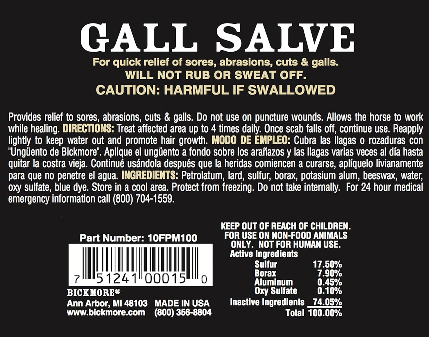 Gall Salve for large animals Bickmore