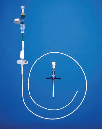 - カテーテルは挿入を容易にするためにスタイレットワイヤーを備えています。